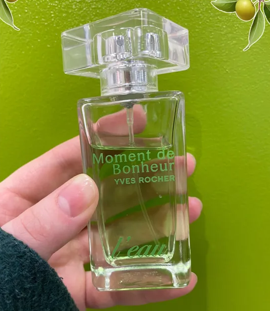 Туалетная вода Yves Rocher Moment de Bonheur L’eau («Момент счастья») — это аромат, в котором свежесть яблока сочетается с цветочными и древесными нотами. В верхних нотах — кисловатые оттенки натуральной эссенции яблока, которые придают композиции лёгкую фруктовость. В сердце аромата — нежный и искрящийся аккорд майской розы Грасса. В шлейфе — древесная нота кедра Вирджинии, которая обогащает аромат многогранным звучанием Аромат относится к семейству фруктовых и цветочных. Перед покупкой рекомендуется тестировать аромат на коже, так как он может по-разному раскрываться в зависимости от температуры тела и других факторов. Также стоит учитывать, что некоторые версии аромата могут быть винтажными или ограниченными в доступности.