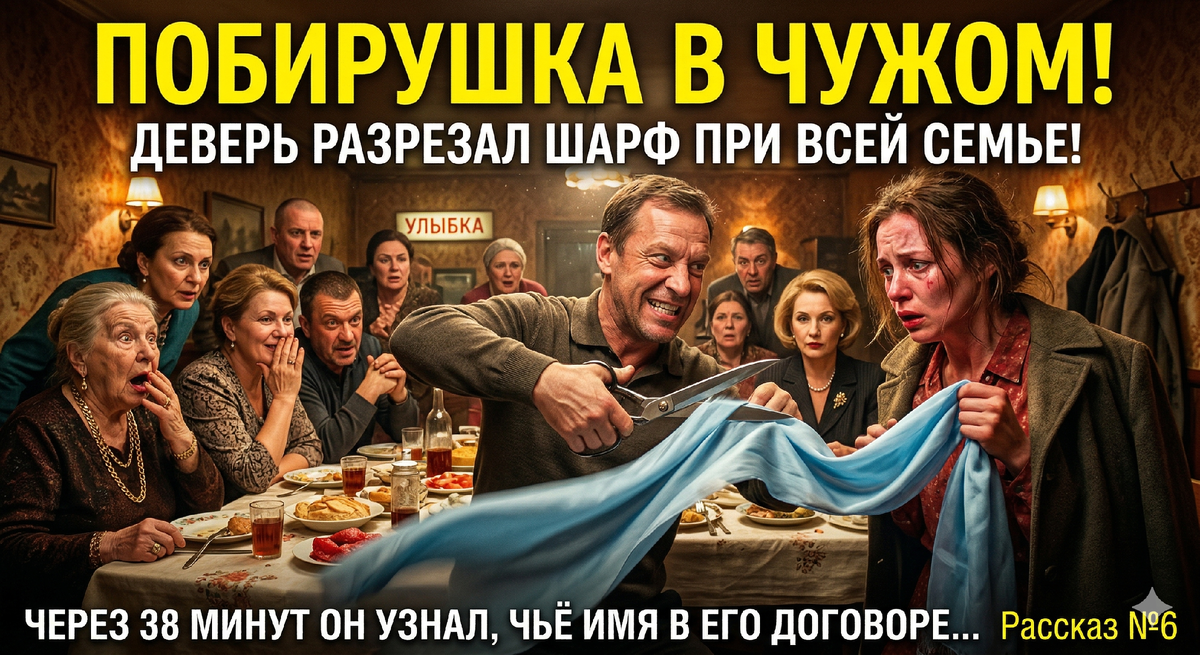 Лезвия кухонных ножниц лязгнули сухо, как затвор старой винтовки. Светло-голубой шелк, который я купила себе на тридцатилетие, распался на две неровные тряпки. Прохор, деверь мой, стоял прямо передо мной, и его лицо лоснилось от жирного жаркого и осознания собственной безнаказанности. Вокруг стола замерли семнадцать человек — вся наша «большая и дружная» семья.