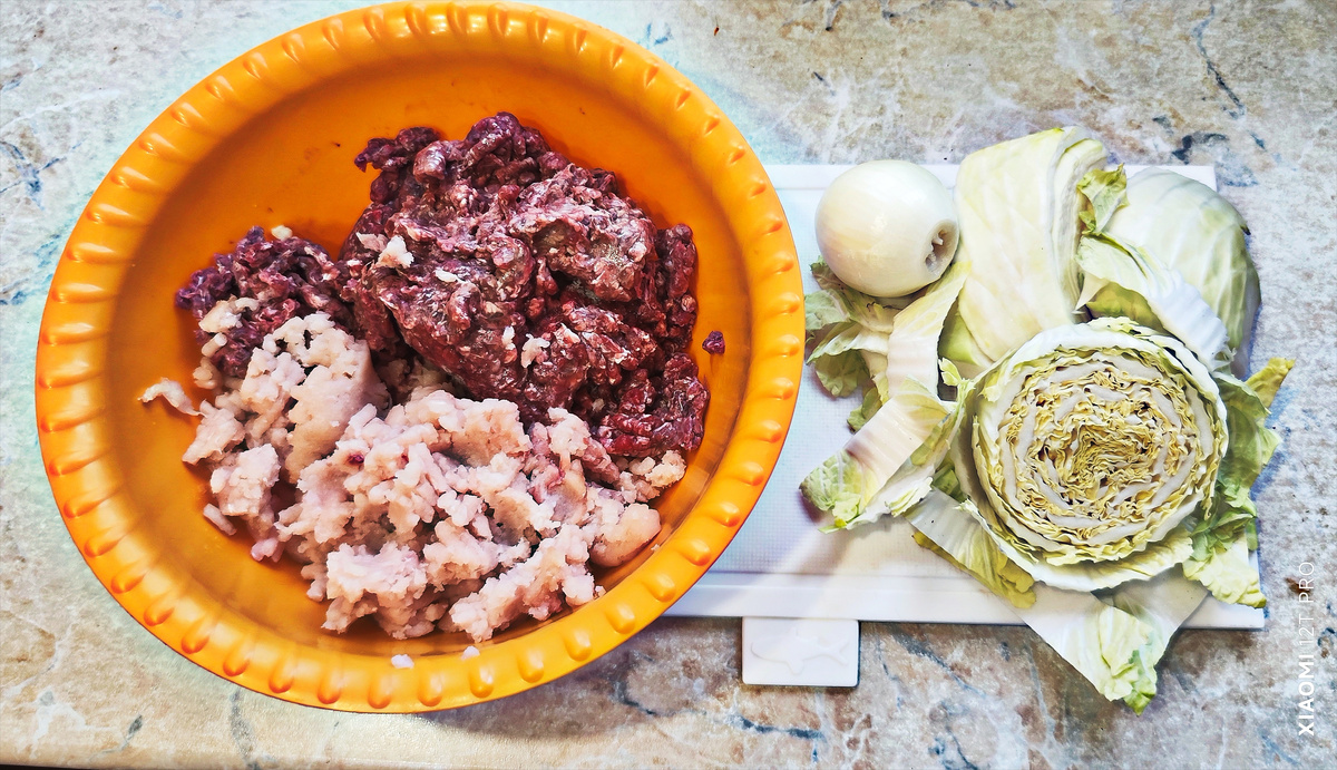 - Фарш - 1 кг (говяжий+куриный)