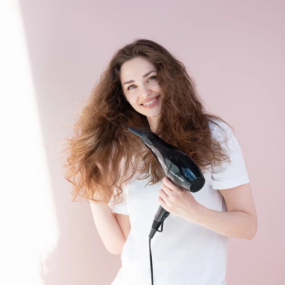 Оптимальным решением считается использование мощных моделей с современным мотором BLDC. Эти фены обеспечивают стабильный поток воздуха, быстрее высушивают волосы и позволяют работать на более щадящих температурных режимах. Дополнительным преимуществом становится насадка-концентратор, которая помогает точно направлять поток и контролировать процесс укладки.