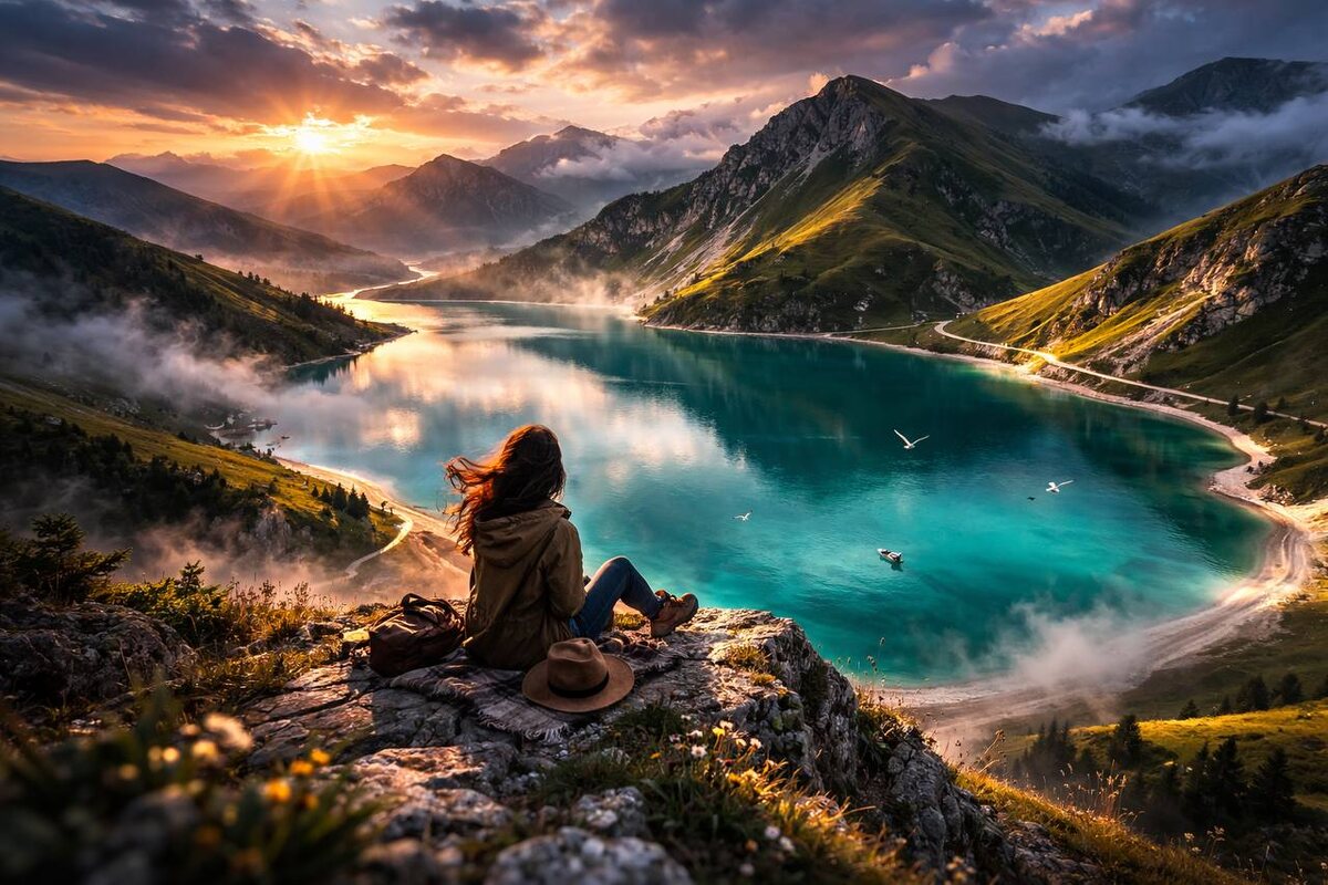 Ещё немного по водным достопримечательностям? 😉 Только что были в Адыгее, а теперь перемещаемся чуть дальше — в горы. Есть место, где вода такого цвета, что сначала думаешь, что это точно фильтр. Но нет, всё настоящее. Озеро лежит высоко. Вокруг склоны, ветер и тишина. Летом здесь свежо, а зимой по-серьёзному холодно. Людей немного. Простора - много. 🧭Ну что, угадаете, куда переносимся теперь? ——— 🔴Куда поехать в Max