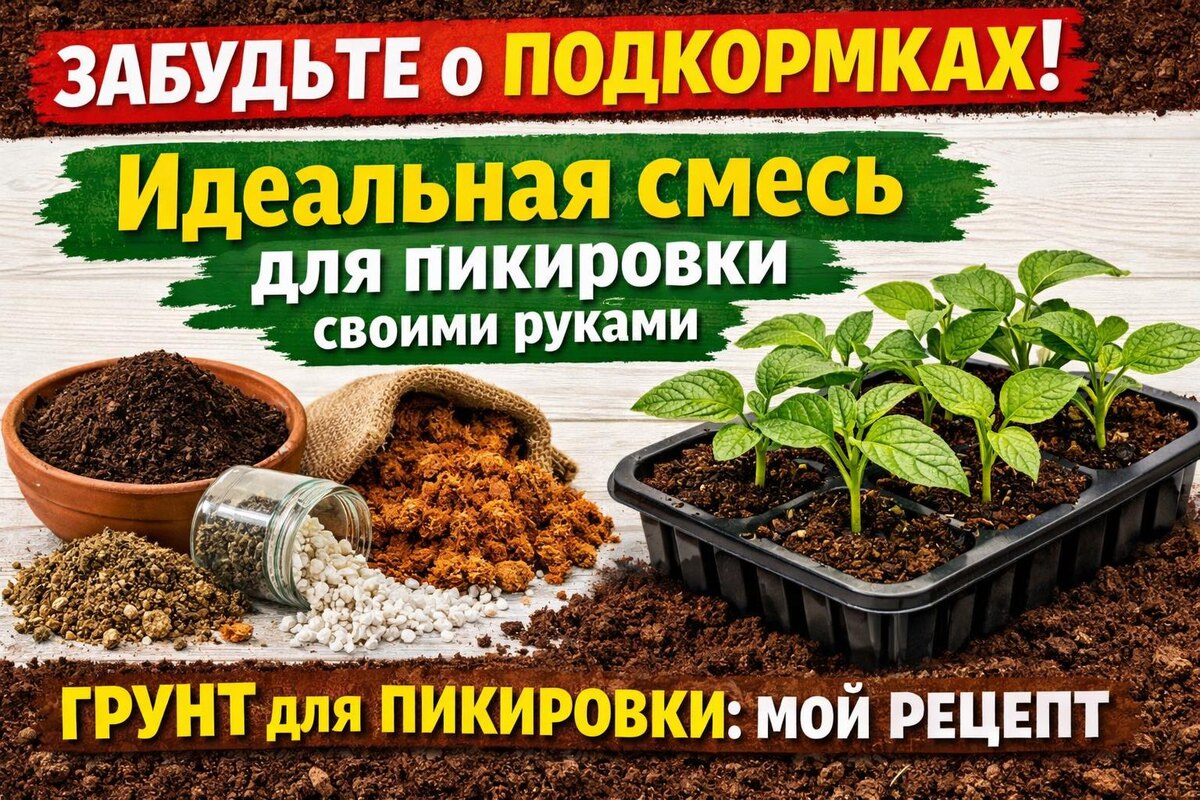 (Покупать дорогой грунт и потом лить тонны подкормок — это путь садовода-мазохиста. Есть смесь, которая уже содержит ВСЁ необходимое для рассады на 2 месяца вперёд. Никаких удобрений, никаких танцев с бубном. Просто пересадил — и забыл!) ❌ ВАС РАЗВОДЯТ НА ДВА ФРОНТА! Сначала вы платите за "супер-грунт", который на поверку оказывается мёртвым торфом. Потом вам продают десяток подкормок, чтобы оживить то, что должно было быть живым изначально. Замкнутый круг. Главный секрет: Идеальный грунт для пикировки — это не просто "земля". Это ЖИВАЯ, ПИТАТЕЛЬНАЯ, СТРУКТУРНАЯ СМЕСЬ, в которой уже заложено всё необходимое для роста: азот для листьев, фосфор для корней, калий для стебля, кальций для иммунитета и микроорганизмы для усвоения. И сделать её можно за 15 минут из 5 компонентов. Верховой торф нейтрализованный — 5 литров. Биогумус (вермикомпост) — 3 литра. Вермикулит или перлит — 1 литр. Костная мука — 1 стакан (200 мл). Древесная зола — 1 стакан (200 мл). Готово! Этот грунт уже содержит ВСЁ