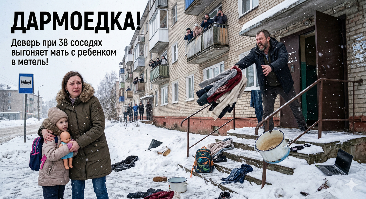 Я стояла на автобусной остановке прямо напротив нашего подъезда. Снег уже припорошил мои волосы, а руки, сжимавшие ручки сумки, которую я успела подхватить, почти не слушались. В сумке лежали документы и смена белья для Вари. Моя семилетняя дочь забилась в угол скамейки на остановке, обхватив коленки. Она не плакала. Она просто смотрела, как её вещи превращаются в грязные тряпки на сером снегу. И этот её взгляд — пустой, взрослый — жёг меня сильнее стыда.