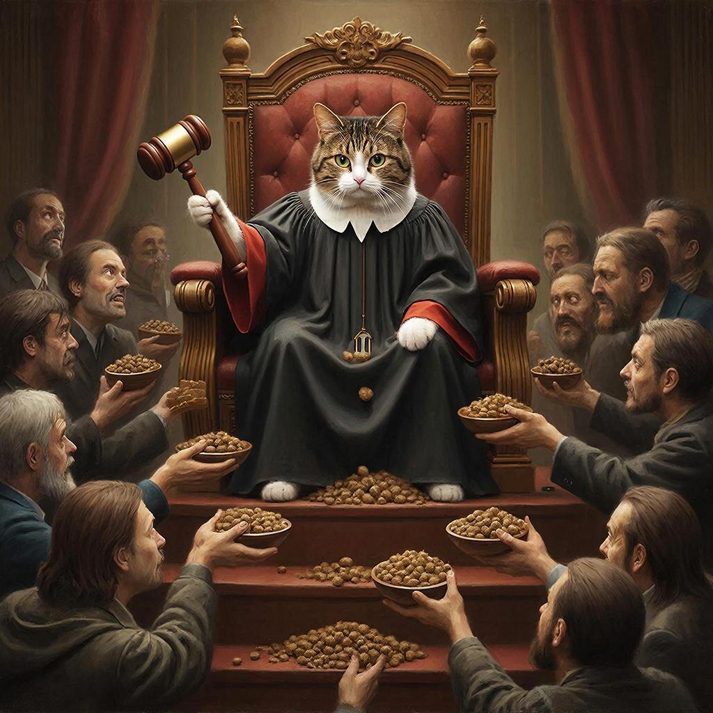 дело передаётся в суд присяжных из числа животных (собаки, кошки, хомяки, попугаи). Присяжные решают: была ли угроза или животное просто хотело есть.