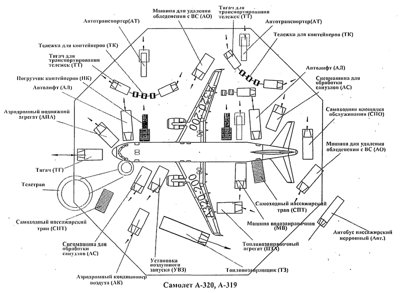 Первый вопрос. Как размещается спецтранспорт под самолётом. ДОПы должны изучить эти карты и сдать МКК. ТГО тоже должен от зубов отскакивать. Механики тоже должны быть готовы. Вот прибыл самолёт, нужно до высадки и выгрузки организовать послеполетный осмотр. Куда смотреть, на что внимание обращать? Как грузчикам открывать люки багажников? Их тоже нужно обучить, взять листы ознакомления. Куда вешать страховочный шнур источника питания?