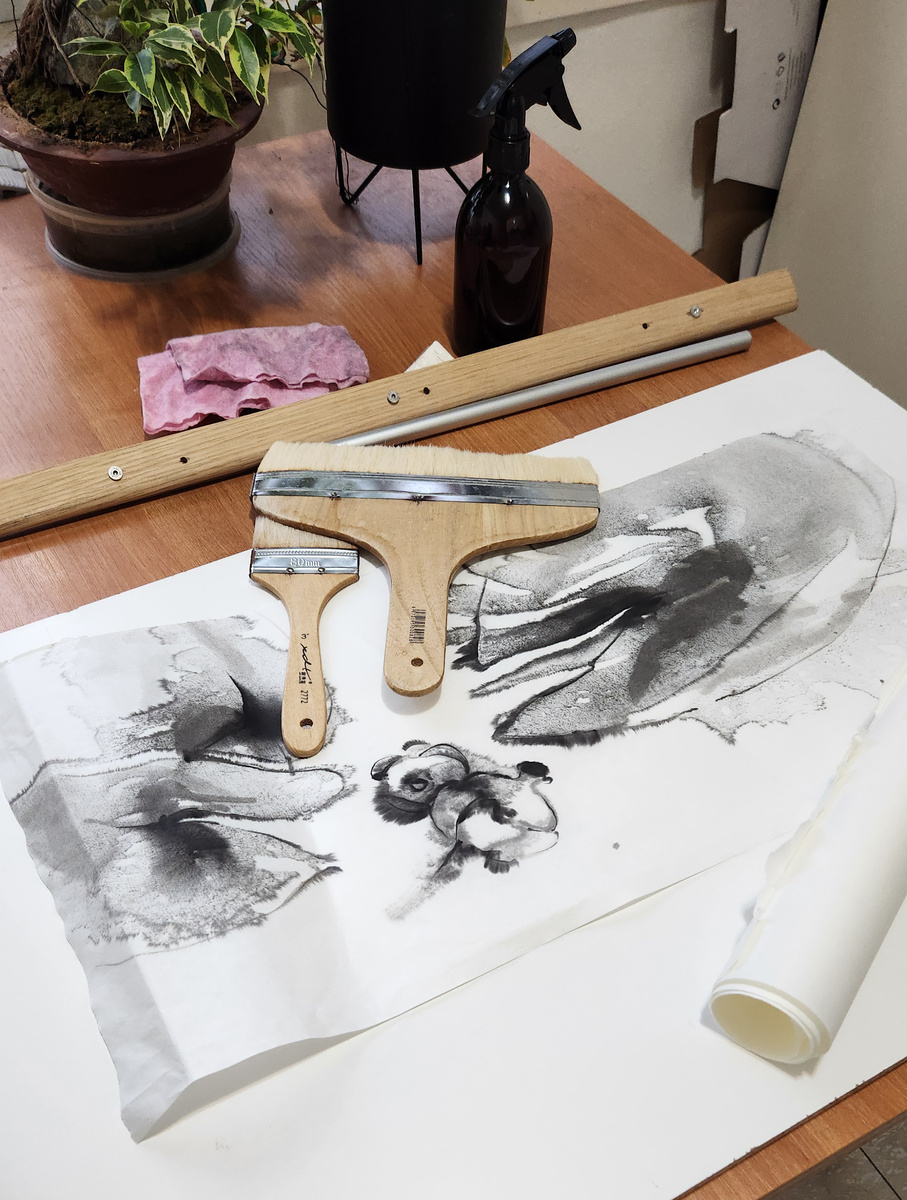 17.12.25 Давно хотела сделать пошаговую инструкцию к проклейке, но всё руки не доходили. Наконец-то фотоматериал готов. Итак. Способ, которым я проклеиваю, это результат моего опыта, наложенный на видео уроки и статьи на эту тему. Он может быть правильный или не правильный, но он себя хорошо показывает и я им довольна. Увы, не сказать, что в сети есть какое-то разнообразия проклеек. К каждому пункту я приведу комментарий. 1 Нам понадобится : Тёплая вода и обойный клей (там, как правило, содержатся вещества, защищающие от плесени, что не лишнее. Проверьте перед началом, чтобы в порошке не было красящих гранул). Разводим до густоты киселя. Кисти : флейцевые 2 штуки. Важно, чтобы ворс был белый. Идеально подходит коза. У меня для клея кисть шириной 22 см, и это очень удобно. Для разравнивания - 7 см. И этого мне хватает Бумага для подкладного слоя. Я использую более плотную, наполовину зрелую (half ripe) бумагу. Но тут - дело вкуса. Надо отрезать кусок большего размера, примерно на 3-5 см