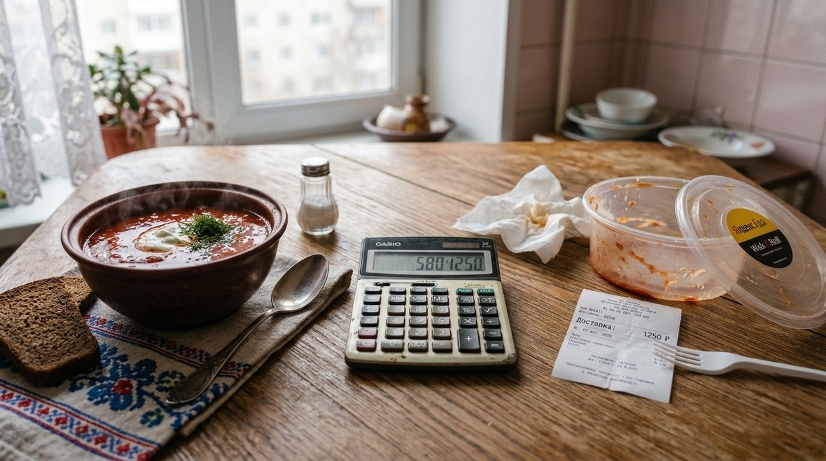 Я посчитала — за ним, по привычке. За шесть дней он потратил на еду четыре тысячи семьсот рублей. Пельмени, сосиски, доставка, роллы, пицца, растворимый кофе. Я за те же шесть дней — тысячу шестьсот. Борщ, запеканка, вареники, оладьи, салаты, компот. И каждый день — горячее, свежее, вкусное.