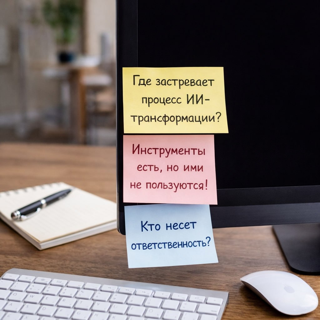 Большинство компаний начинают внедрение ИИ с инструментов: “а давайте купим систему и создадим ассистентов” или “а давайте автоматизируем <продажи/логистику/рекрутинг/…>”, но на деле начинать нужно с понимания, где именно в вашей системе AI может не прижиться, потому что любая трансформация – это не про технологии, а про сопротивление системы.