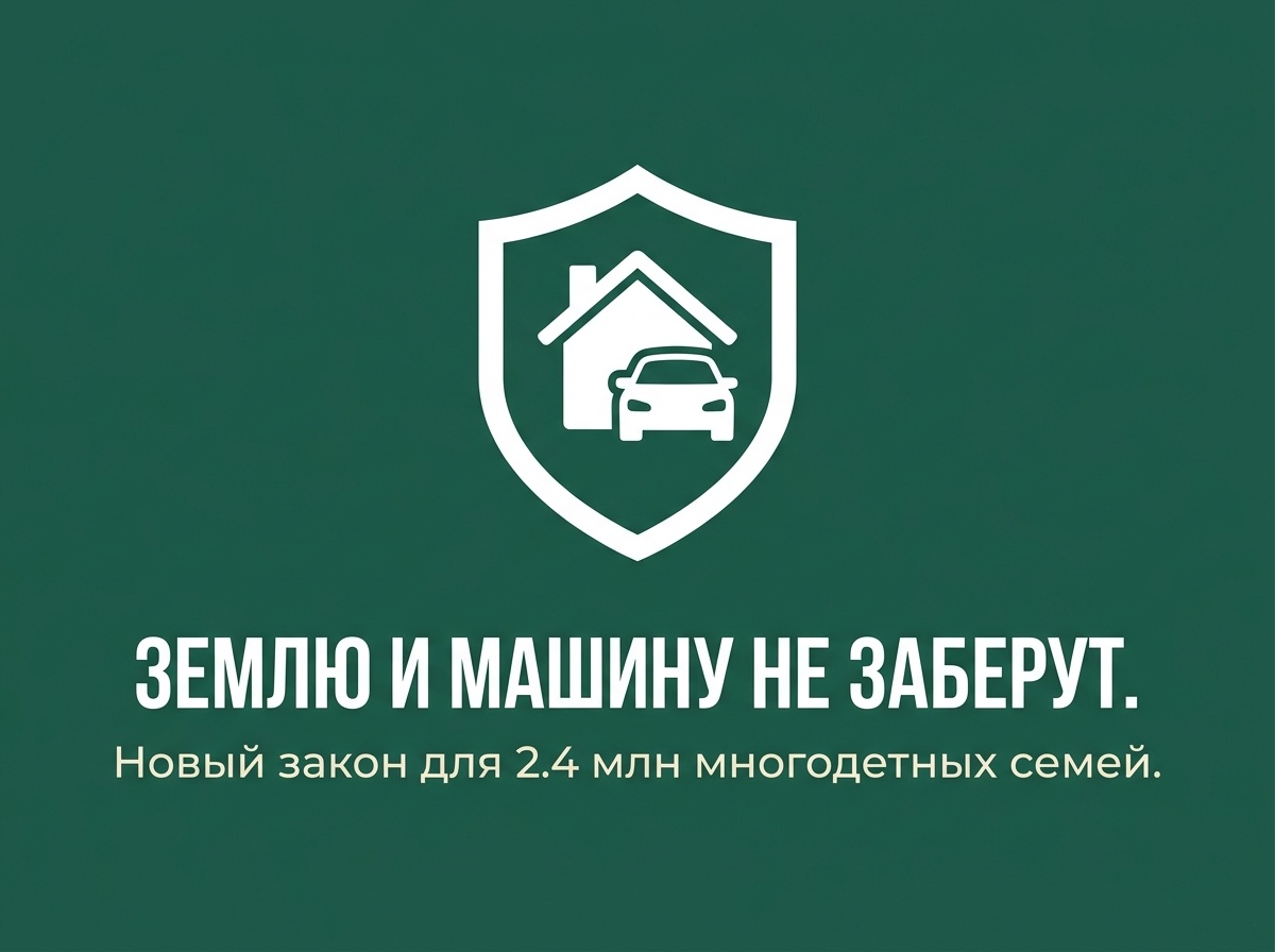 Многодетные семьи 2026: землю и машину больше не заберут за долги