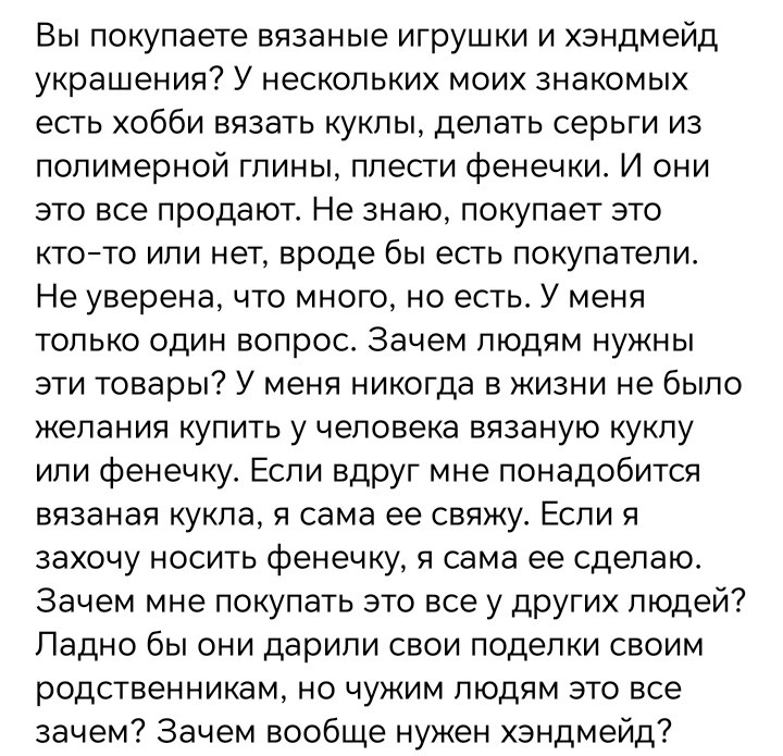 Нет, я знала, что многие не особо любят изделия ручной работы, но чтобы вот прямо так....