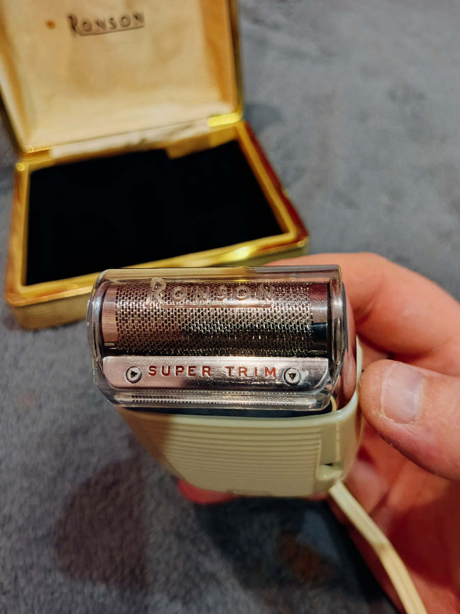Продавал сын умершего хозяина, сын уже как я понял , сам почти ровесник бритвы. Бритва 1956 года. Кстати конкретной даты начала производства я не нашел, обшарил все зарубежные сайты, но судя по архивным объявлениям о продажах, выпускали ее где то с середины 50х до начала 60х годов. По исполнению кейса - ну 1в1 Ремингтоны из конца 40х начала 50х. Прям точь в точь.