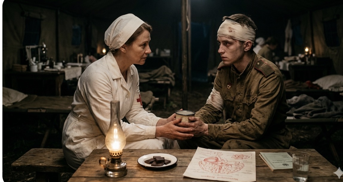 Первая мировая война превратила теорию в практику выживания. В лазаретах Петрограда Самойлова столкнулась с «невидимыми ранами» — снарядным шоком и военными неврозами. Центральное место в её арсенале занимал горячий шоколад. Для неё это был не десерт, а инструмент десенсибилизации. Шоколад выступал биологическим ключом к заблокированным эмоциям: его тепло согревало застывшее тело, а вкус возвращал солдата из «окопного ада» в пространство безопасности и детского покоя. Это была «диетотерапия души» — замена разрушительного алкоголя созидательным ритуалом.