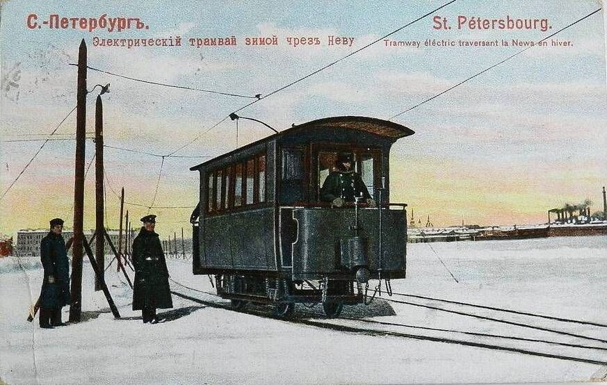 Проект зимнего трамвайного движения обошелся в 28 тысяч рублей. В начале проложили три узкоколейных однопутных линии с разъездами: «Сенатская площадь — Васильевский остров», «Дворцовая набережная — Мытнинская набережная» и «Суворовская площадь — Выборгская сторона». Электростанцию поставили на небольшой барке у Мытнинской набережной. Чтобы избежать столкновений, у конечных пунктов устроили разъезды с особыми автоматическими стрелками. Позже появилась еще одна линия: «Суворовская площадь—Петроградская сторона». 19 января 1895 по льду запустили тестовый электрический трамвай.