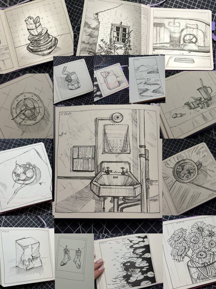 Стабильно занимаюсь бумагоморанием, иногда лучше, иногда хуже. Стабильно не могу рисовать в общественных местах, прям стресс😅