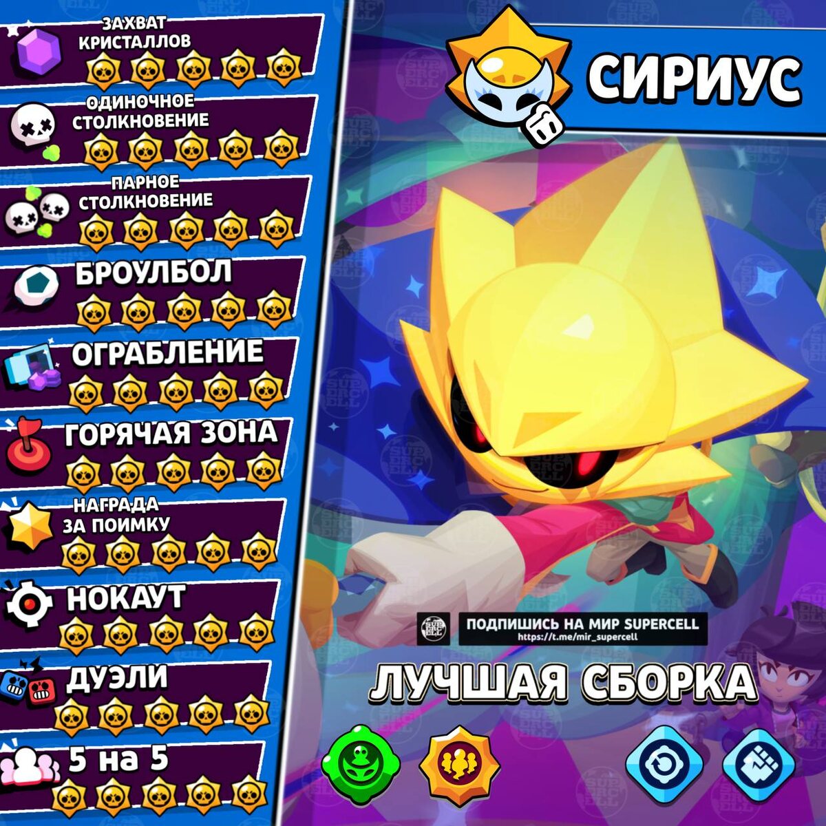 Даже после нерфа Сириус является сильным бравлером. Конечно, нерфы немного ухудшили его, особенно исчезновение теней после его смерти. Но даже так Сириус все ещё в мете и силён. ✅Новости по Clash Royale - ТЫК Мир Supercell. Подписаться
