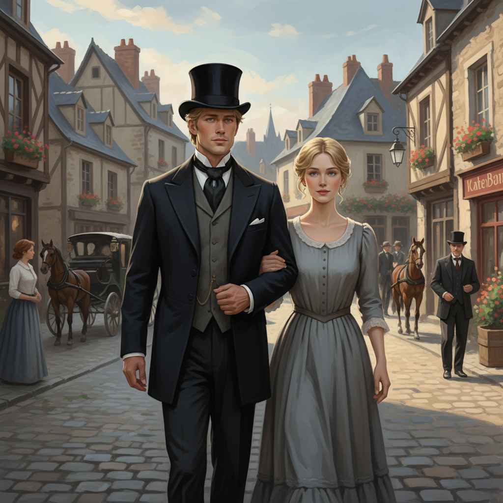 Высокий, плечистый, со светлыми волосами, убранными в хвост, выразительные черты лица, при светлых волосах — тёмные брови, и глаза, обрамлённые густыми чёрными ресницами; чистая кожа, что в этом времени было большой редкостью. Одет неброско, но достаточно прилично. Тёмно-серый удлинённый камзол, подчёркивающий узкие бёдра и ширину плеч, из‑под которого виднелась белая рубаха, в руках — цилиндр. На стройных ногах такие же тёмно-серые брюки, заправленные в высокие сапоги. На первый взгляд я бы дала ему около тридцати лет.