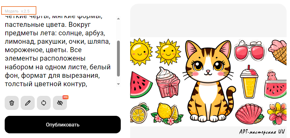 В результате получается что-то очень тёплое и симпатичное: будто маленький лист с наклейками из детства, только сделанный при помощи ИИ.
