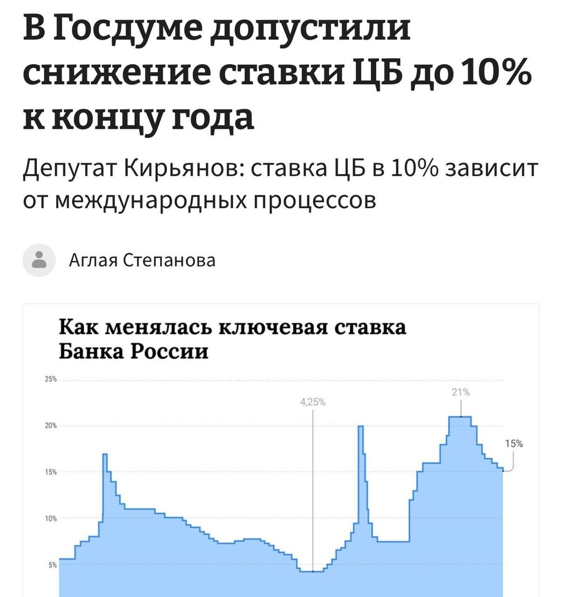 🏦 Ключевая ставка в России может опуститься до 10% к концу году