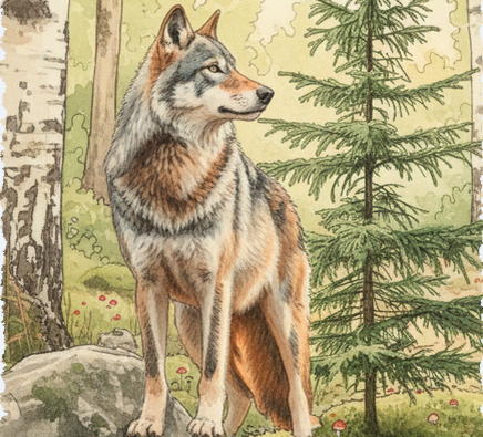 И тут Арден буквально почувствовал затылком чей-то взгляд. Тяжёлый, внимательный, оценивающий. Принц обернулся. Метрах в двадцати за ним, не таясь, шёл волк. Крупный, серый, с умными жёлтыми глазами. Волк не рычал, не скалился. Он просто шёл, соблюдая дистанцию, словно приличный человек в очереди за сыром.