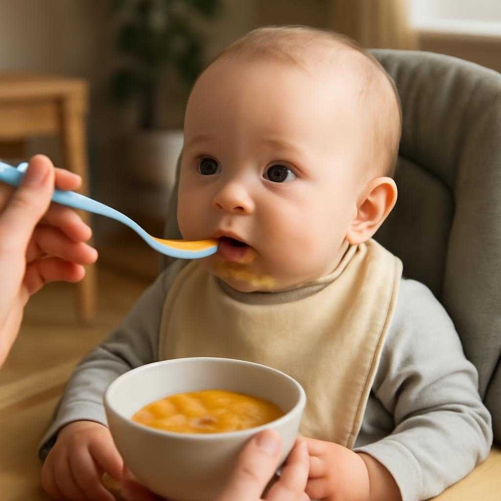 Объём наращивают постепенно. В первый день достаточно маленькой пробы. Дальше порция растёт при хорошем самочувствии. Грудное молоко или смесь сохраняют своё место, прикорм не вытесняет их одним рывком. На начальном этапе новая пища знакомит, а не соревнуется с главным питанием. Родителям порой хочется увидеть «настоящую тарелку», однако ребёнок осваивает путь микрошагами. Несколько ложек — уже полноценная работа для рта, языка, щёк, глотки и нервной системы.