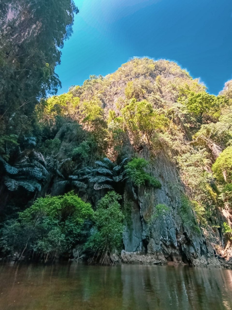 Лагуна в мангровых зарослях. Чтобы попасть туда - надо проплыть через грот. И вот мы заплываем в пещеру, немного плывём в полутьме, видим свет в конце тоннеля... А там... Мы не ожидали увидеть такую красоту! Скажу честно - фотографии не передают всего масштаба! Лагуна окружённая скалами- с огромными пальмами, мангровыми деревьями, растущими из воды и прыгающими обезьянами по заросшим склонам. Пейзаж реально фантастический! Это было, словно из фильмов про Индиану Джонса! Оказавшись там мы словно побывали в другом измерении! Эту красоту я запомню на всю жизнь!