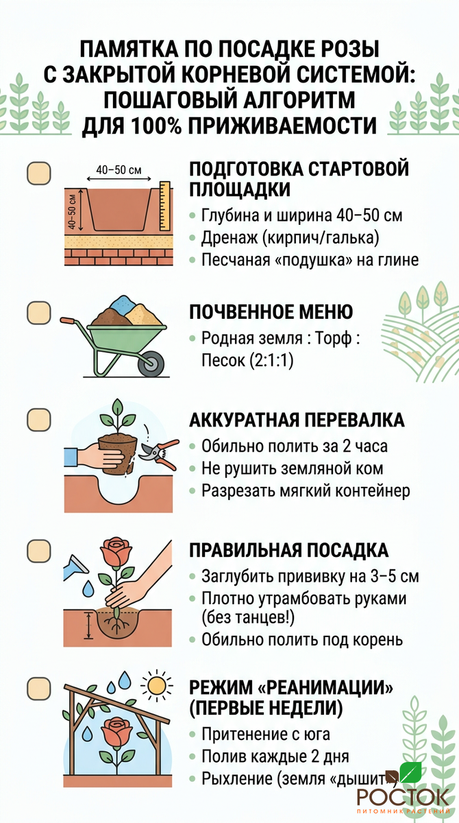 Памятка по посадке розы с закрытой корневой системой: пошаговый алгоритм для 100% приживаемости