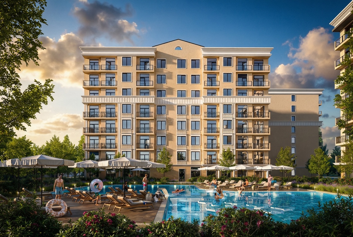 Друзья, вы уже слышали, как возле озера Мойнаки в Евпатории разрастается новый микрорайон? Если нет — срочно записывайте, чтобы потом не искать “где это место, о котором все говорят”. Там сейчас строится около десяти новых объектов — и жилые комплексы, и гостиницы. Каждый на своей стадии: кто-то уже машет фасадом, кто-то пока роет яму мечты. Вариантов и форматов тут больше, чем точек с кофе навынос на Приморской набережной. Сегодня поговорим про один из самых дерзких отелей того района, который нагло приблизился к морю ближе всех остальных. Серьёзно — всего три минуты пешком до воды! Для Крыма это примерно как три минуты до Красной площади в Москве: редкость, мечта и повод для гордости внутри чата с родственниками. Локация — честная вторая береговая линия. В мире курортной недвижимости это, конечно, не первая линия, но по всем параметрам — практически не уступает, разве что чуть менее пафосно. Архитектура — современный средиземноморский стиль: фасады светлые, аккуратные элементы декора