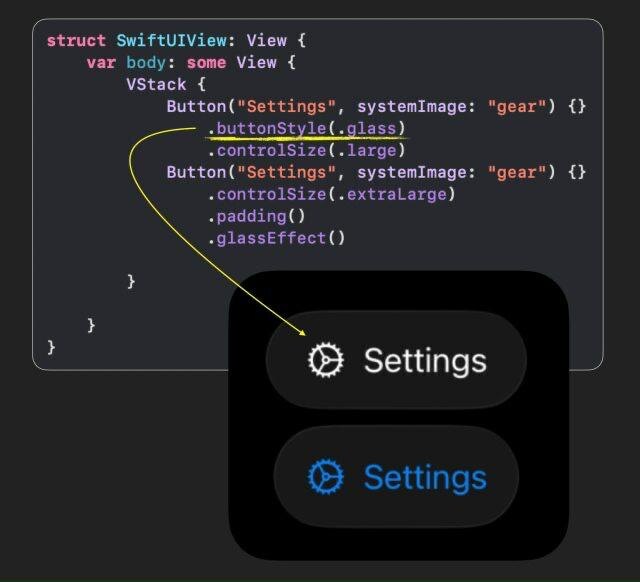 Тут мы рассказывали про модификатор .glassEffect() А сегодня расскажем про новый стиль кнопки .buttonStyle(.glass). Пример вы можете видеть на изображении, как видите он не меняет цвет текста кнопки и задаёт более красивый padding Пользуйтесь)