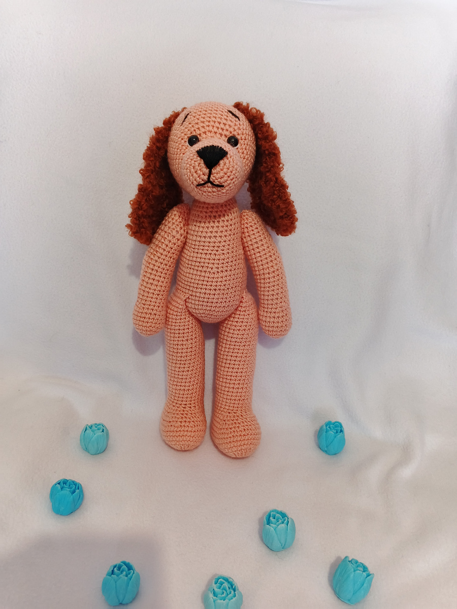 Сначала вязала собачку весеннюю