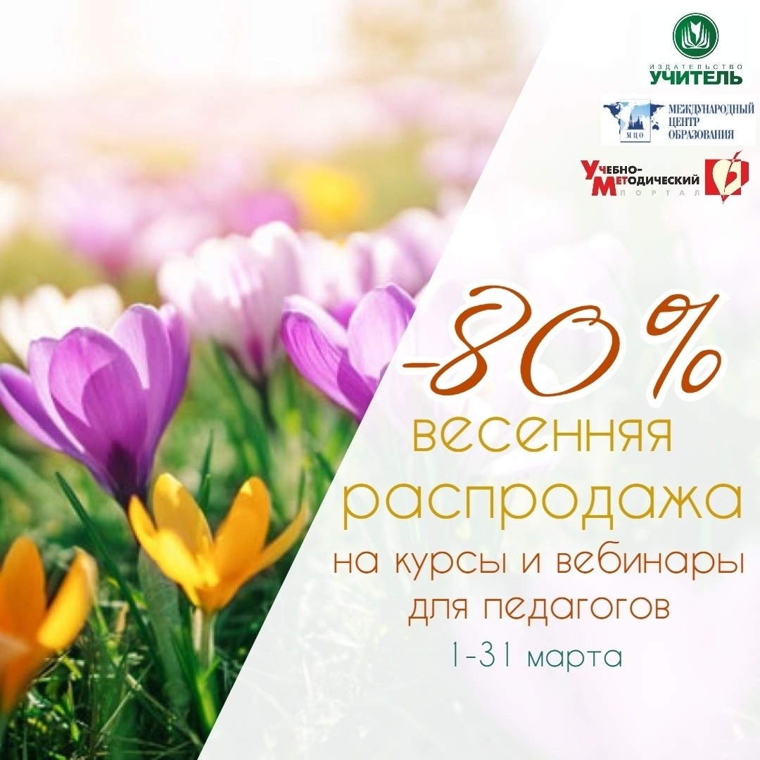 уникальную акцию «Весенняя распродажа». В это время вы сможете приобрести курсы и вебинары со скидкой 80%. Подробнее 👉https://www.uchmet.ru/campaigns/4074280/