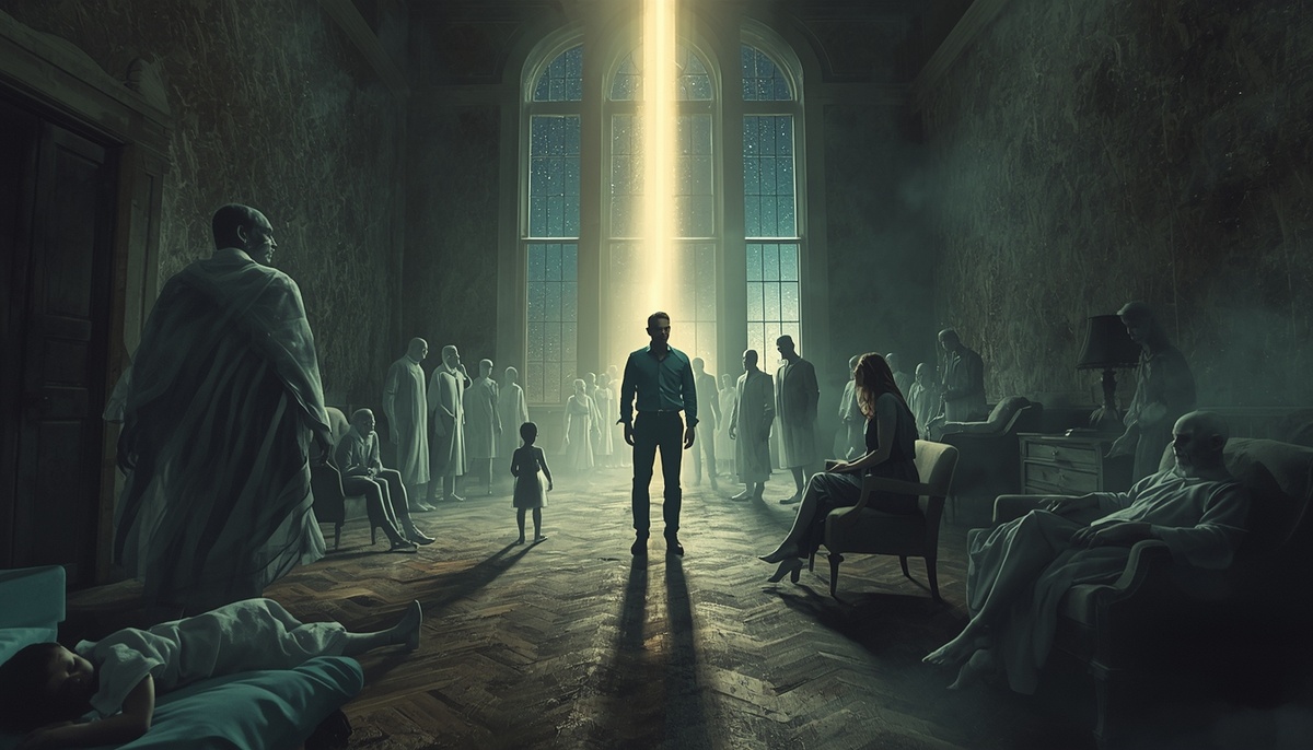 Они сидели, стояли, лежали. Кто-то у стены, кто-то у окна, кто-то в кресле в углу. Они были бледные, полупрозрачные, как воспоминания. И все смотрели на него.