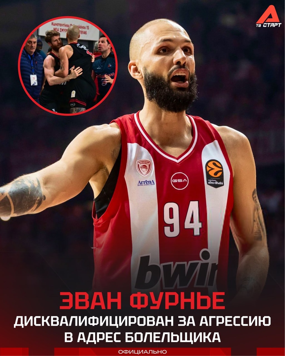 В матче «Паниониос» – «Олимпиакос» фанат хозяев показал Эвану Фурнье два средних пальца. Французский защитник полез разбираться с ним на трибуну. Вердикт греческих дисциплинарных органов был суров, но справедлив. Один матч дисквалификации для Эвана и €1800 штрафа. Главный тренер «Оли» Георгиос Барцокас за участие в перепалке заплатит €5000. Дерби против «Пао» Фурнье пропустит 🙅♂️ Подписывайся на ТВ СТАРТ в MAX📲