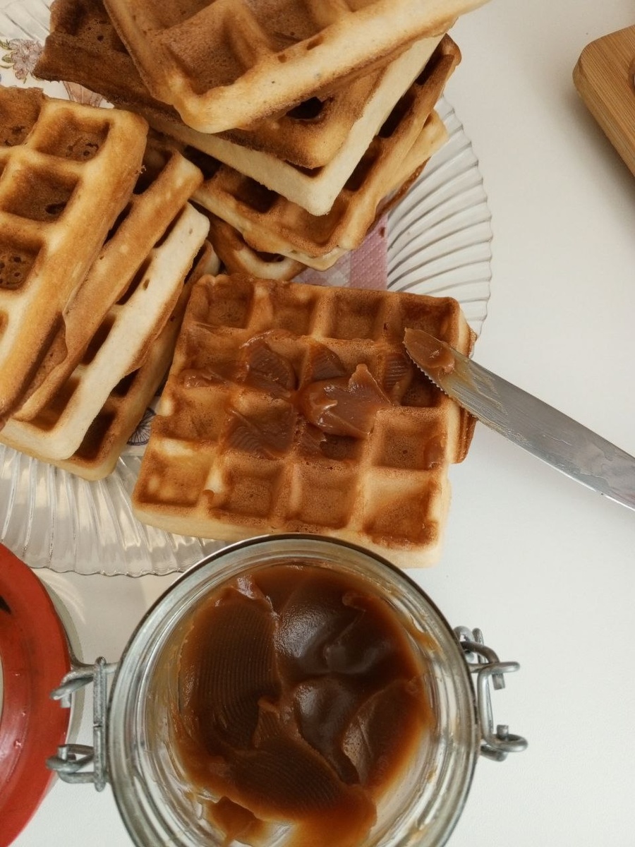Вафли с карамелью. Карамель, оказывается, готовить не сложно. Зато вкусно как, просто пальчики оближешь! Готовьте с удовольствием! #готовимдомавкусно #десерт #выпечка #карамель #вафли #сливки #сахар #масло_сливочное