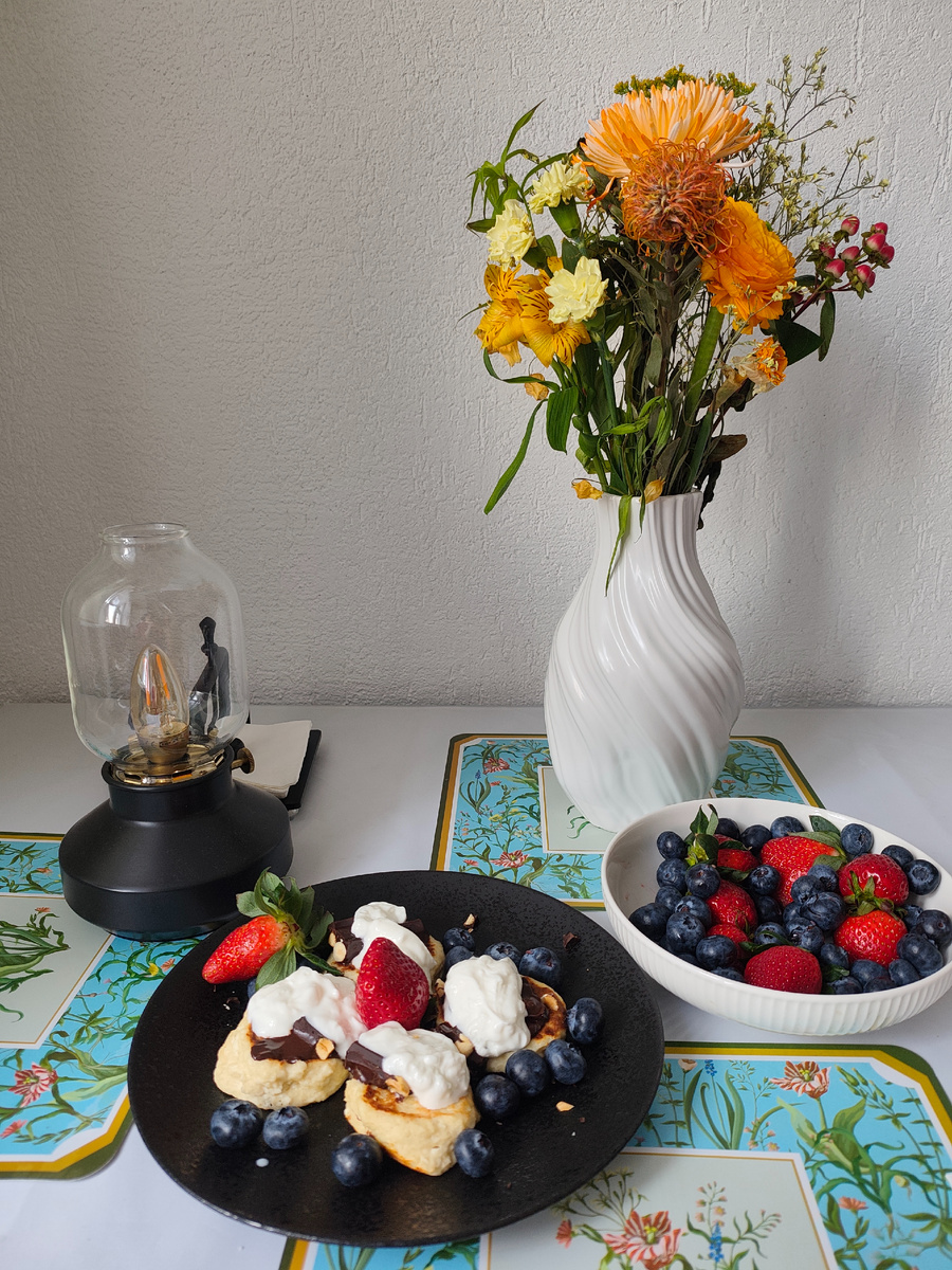 На десерт фрукты как манго, маракуйя, киви, яблоки, груши, апельсины, мандарины, памелло, грейпфрут. Или горсть орехов и немного темного шоколада, сухофрукты. Реже ягоды, как баловство клубника или голубика.