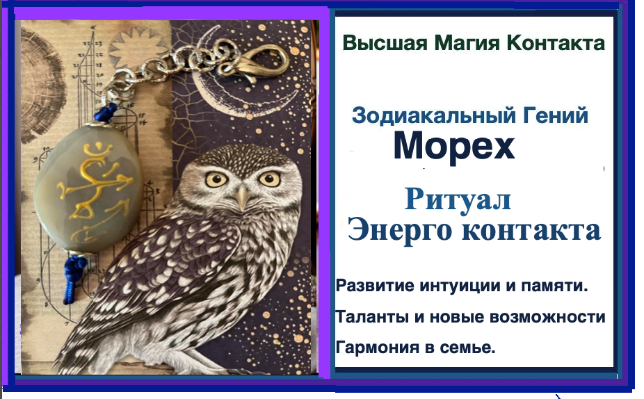 Талисман представляет собой бусину из серого агата, на которой акриловым контуром начертана сигилла — печать Зодиакального Гения. Каждая линия сигиллы — это ключ к ментальному профилю Мореха, символ высшей магии контакта и сакрального знания. Серый агат, известный как камень справедливости и Глаз Бога, помогает принять верное решение, обрести внутреннюю гармонию и защититься от конфликтов. #### Ритуал Высшей Магии Контакта Помните: подобные практики не имеют научного подтверждения и относятся к области верований. 1. **Подготовка** Выберите время 21 марта или в любой день, когда чувствуете особую связь с созвездием Рыб. Очистите пространство благовониями (ладан, сандал). Зажгите свечу. 2. **Настройка** Возьмите талисман «Сила Мореха» в руки, закройте глаза. Представьте, как к вам приближается Зодиакальный Гений Морех — мудрый, спокойный, с проницательным взглядом. 3. **Призыв** Произнесите трижды: > « Зодиакальный Гений Морех, Гений из созвездия Рыб, хранитель интуиции и справедливости