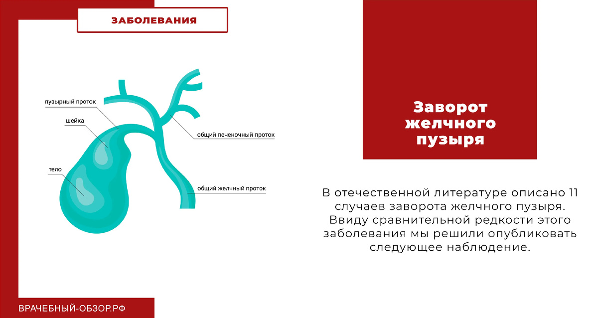 Иногда диагноз ошибается не потому, что врач слабый. А потому, что сама болезнь переодевается. Заворот желчного пузыря — редкость даже для хирурга с хорошей насмотренностью. В отечественной литературе на 1960 год описано всего 11 случаев. И именно поэтому наблюдение Л. А. Мельник читается как клиническая ловушка: пациентка поступает с картиной непроходимости/острого живота, а внутри — орган, который просто… провернулся вокруг себя. Пациентке 80 лет. Четыре дня резких болей в правой половине живота, тошнота, рвота, тяжёлое состояние. Живот асимметричен за счёт правой половины, резкая болезненность, симптом Щёткина-Блюмберга выраженно положительный. Рентген без “классических” признаков непроходимости, но клиника заставляет идти в операционную. И дальше — сцена, которую легко представить как кадр из учебника по редким находкам. В брюшной полости — серозно-кровянистый выпот. Желчный пузырь увеличен так, что занимает всю правую половину живота, а дном… уходит в малый таз. Стенка гангренозна