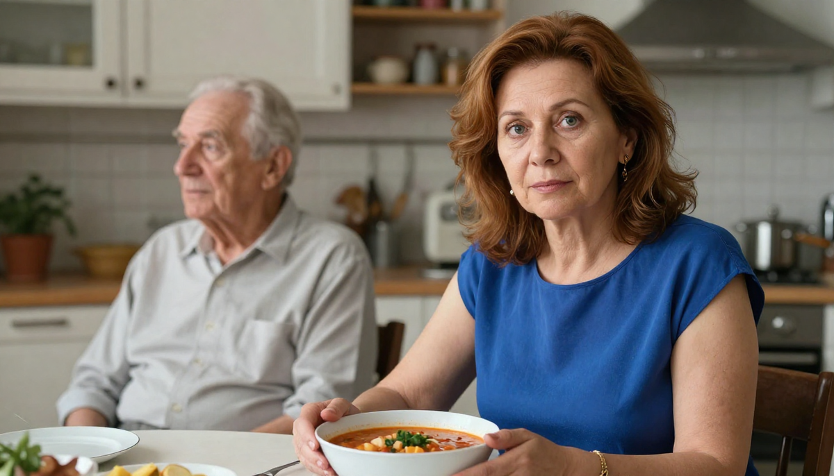 На кухне она стояла у плиты в своём застиранном фартуке — том самом, с красными маками, который привезла с собой ещё в первый приезд. За десять лет он не менялся. Как и она сама.