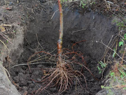 Прежде чем посадить саженец яблони следует особенно тщательно подойти к его выбору. Если саженец будет с закрытой корневой системой - в горшке, проверить наличие разросшейся корневой системы в таком случае можно следующим нехитрым способом: переверните горшок и посмотрите на дренажные отверстия, обычно из них торчат корешки. Покупая саженцы яблони с открытой корневой системой, проверьте жизнеспособность корней: поскоблите их ногтем - живые корни под корой и на срезе должны быть белые. Растения, выращенные в контейнерах, теоретически можно высаживать в любое время года. И все же лучше избегать экстремальных погодных условий: морозов, засухи, жаркого солнца, сильного ветра. Особенно это важно для вечнозеленых растений и тех, что на момент посадки находятся в цвету. Посадку яблонь следует производить по весне. Подготовка почвы и посадка Яму под яблоню выкапывают не менее 60-80 см диаметром. Глубина - 70-80 см. Помните, что посадочная яма - это не луночка для корней или земляного кома саже