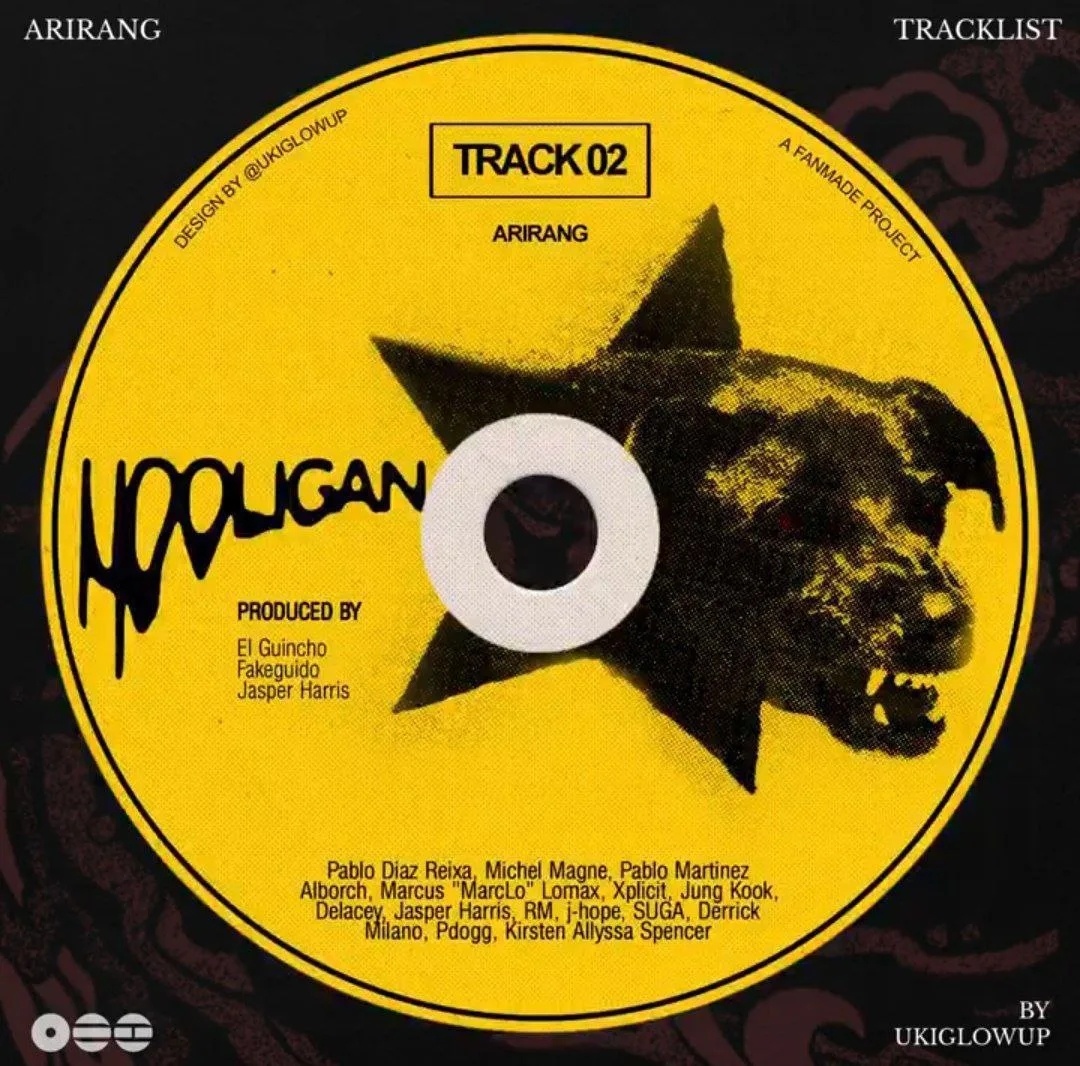 «Hooligan» Один из самых интересных треков на «Arirang» с точки зрения звучания. «Hooligan» — это рэп‑композиция, сочетающая в себе струнную аранжировку и звуки сталкивающихся острых лезвий. Песня невероятно прилипчивая. Вокал‑лайн группы (Джин, Чимин, Ви и Чонгук) исполняет вокальные партии в припеве. В работе над альбомом также участвовал El Guincho. Вторая композиция «Hooligan» спродюсирована El Guincho, Fakeguido и Джаспер Харрис. К созданию трека приложили руку Чонгук, RM, Джей-Хоуп и Шуга, а также Пабло Диас Рейкса, Мишель Мань, Пабло Мартинес Альборч, Маркус Ломакс, Xplicit, Delacey и Деррик Милано. Перевод лирики трека Hooligan Хулиган Припев Только глянь, этот бит становится безумным Мы врываемся с шумом, снова творим безумие Ха-ха, хулиган Только глянь, этот бит становится безумным Почему эти басы долбят так жёстко? Уходим ещё ниже, в стиле chopped and screwed* Ха-ха, хулиган Только глянь, этот бит становится безумным Куплет Бро, я вот-вот взорвусь Контроль потерян, гол