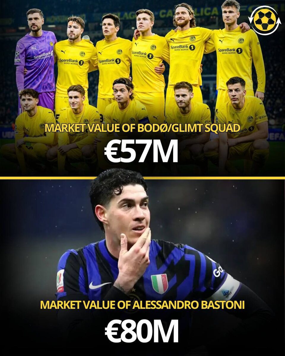 При этом один лишь Алессандро Бастони из Интера стоит 80 миллионов евро. Стартовый состав Будё/Глимт, который сумел выбить Интер из Лиги чемпионов, оценивается всего в 13,5 миллионов евро.