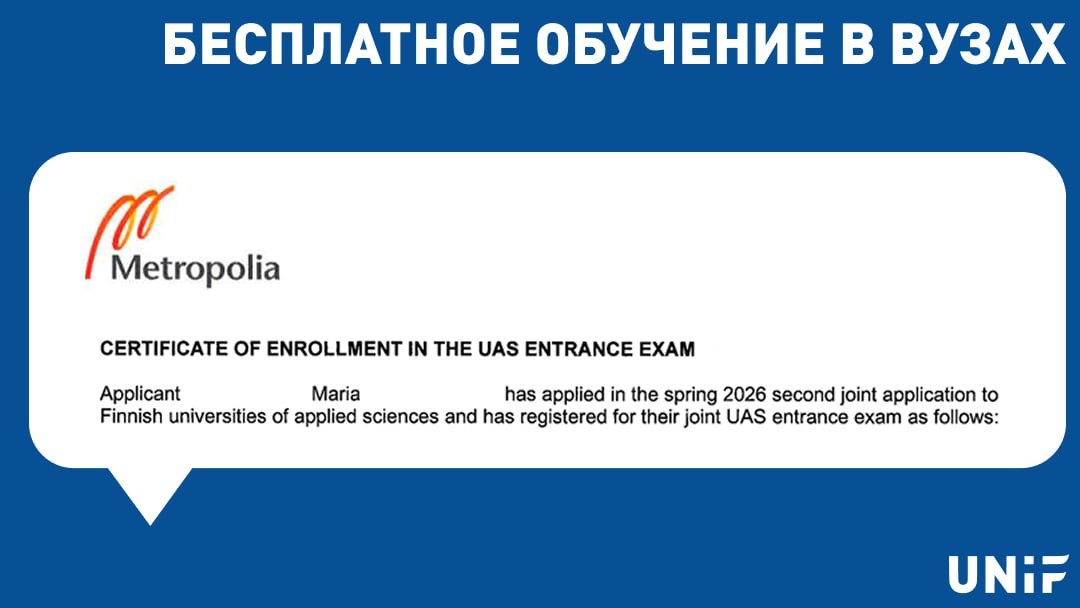 Подача на бесплатное обучение в вузах Финляндии практически завершена. И важная новость — наши клиенты уже получают первые приглашения на вступительные экзамены. Это значит только одно: ⏳ у вас есть ограниченное время, чтобы успеть оформить визу ‼️ Рекомендуемый срок подачи минимум за 45 дней 📌 Где можно податься на визу в РФ: Архангельск Владивосток Екатеринбург Иркутск Казань Калининград Краснодар Красноярск Москва Нижний Новгород Новосибирск Омск Пермь Петрозаводск Псков Ростов-на-Дону Самара Санкт-Петербург Уфа 💶 Расходы: — Консульский сбор: 90 € — Сервисный сбор: 20 € — Медицинская страховка (обязательно) 📊 Из практики: каждый год часть абитуриентов теряет шанс на поступление из-за того, что не успели оформить визу вовремя Чтобы этого не произошло — важно действовать сейчас Мы в UNiF: 🔹проверим документы перед подачей 🔹поможем оформить визу без ошибок 🔹подскажем по срокам именно под ваш экзамен 👉 Оформить визу #финляндия