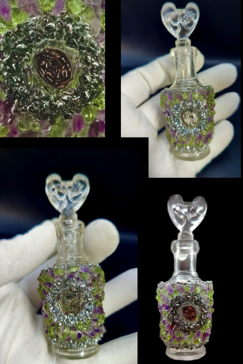 Парфюмерные дома, особенно для своих особенных, лимитированных изданий, активно выбирают хрустальные флаконы ручной работы. Они создаются по старинным технологиям, имеют авторское клеймо, что делает каждый такой флакон по-настоящему уникальным. Крышка флакона, как и сто лет назад, остается важной деталью всей парфюмерной композиции. Мое вдохновение черпается из уникальных шедевров ручной работы первых мастеров, а также из мифов и сказок, и я не обращаю внимания на тех, кто сравнивает мои парфюмерные флаконы с детскими поделками. Например этот отреставрированный мною миниатюрный парфюмерный сосуд XIX века, с его драгоценными стенками и старинной серебряной монетой, возможно, и выглядит немного игрушечным, в отличие от безликих штампованных изделий. Но если присмотреться, то видно, что каждый самоцвет – это часть уникальной мозаики, и это совершенно не похоже на простые детские поделки, а старинная серебряная монета наполняет миниатюрный сосуд колоссальной энергией и силой былых эпох