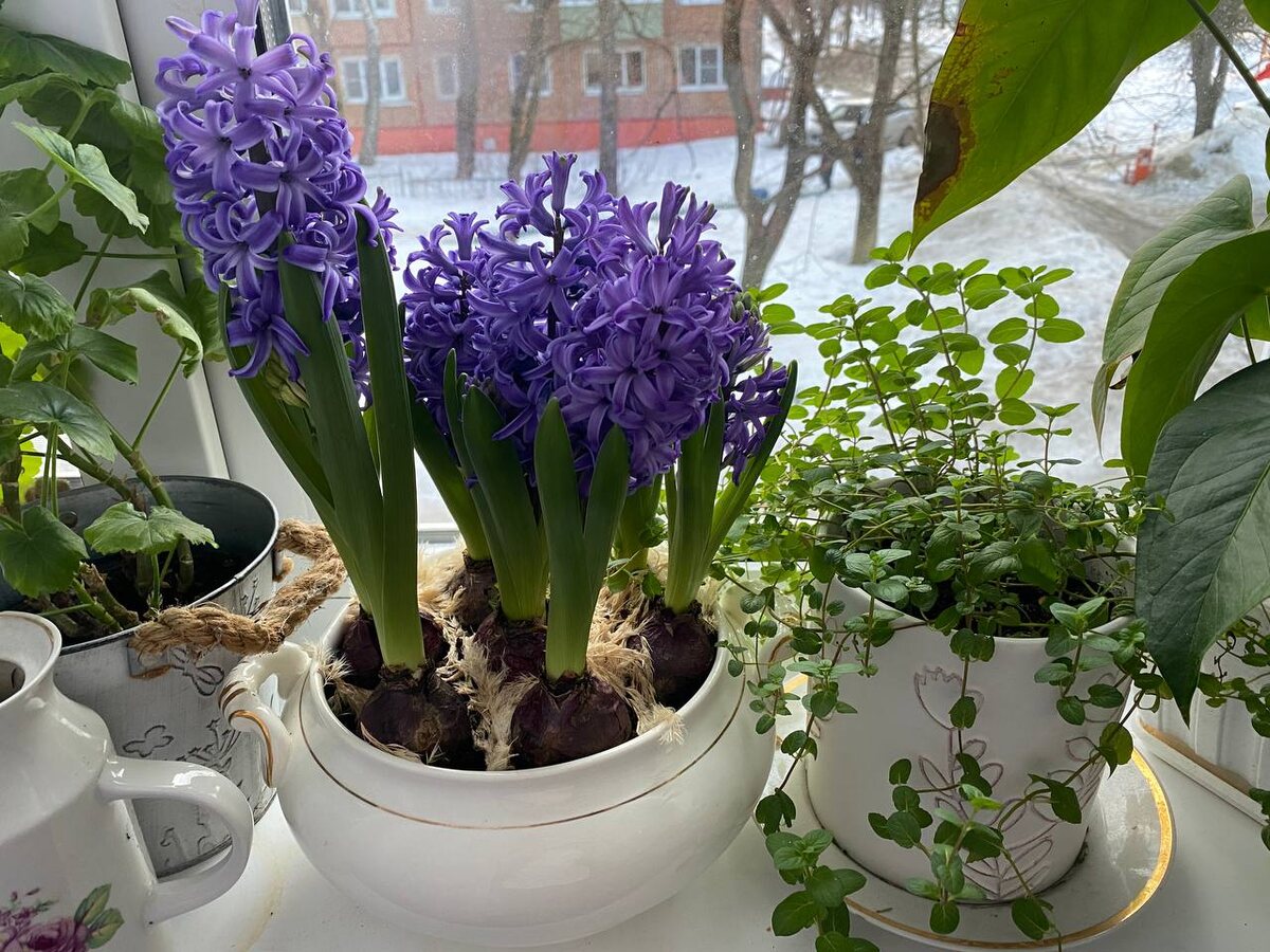 Теперь они почти все отцвели. Я перенесла емкости на балкон, изредка поливаю. Как погода позволит, пересажу их в деревню к той компании гиацинтов,что у меня уже за несколько лет скопилась. К слову, уличным цветением я недовольна - цветут редко, метелки мелкие. Хотя кормлю и пою их весь сезон. Видимо, что-то не так делаю.