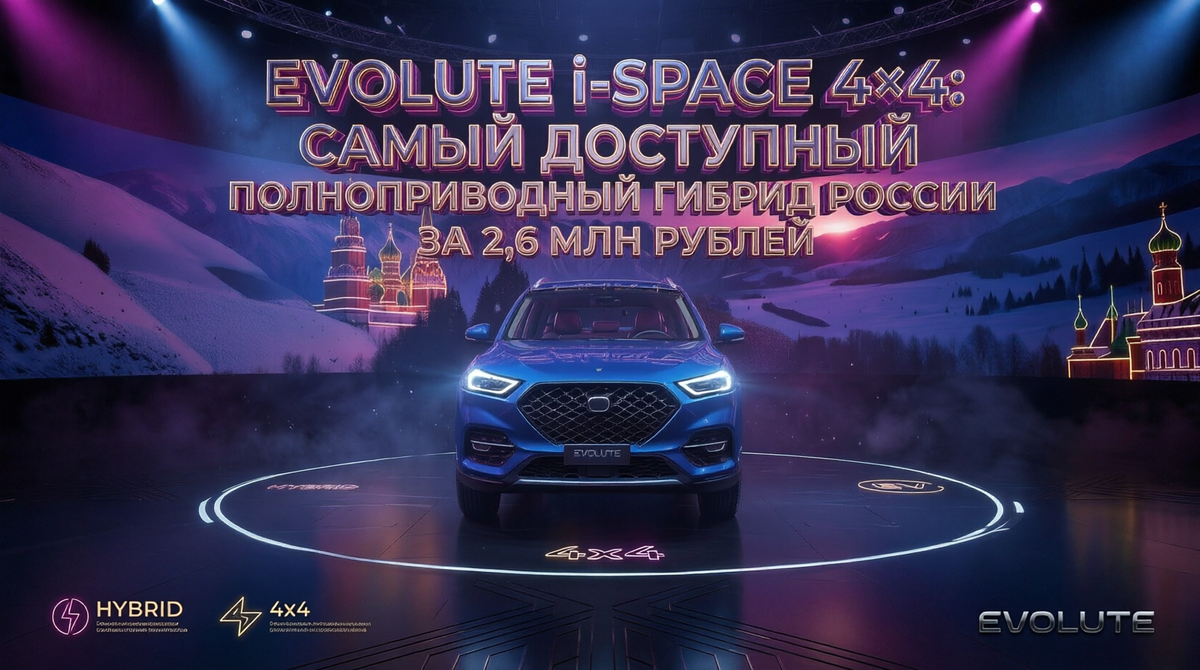 Представьте: вы ищете семейный кроссовер с полным приводом, динамикой спорткара и расходом как у экономичного седана. При этом бюджет не превышает 3 млн рублей даже без скидок. В 2026 году такой вариант есть — и это Evolute i-Space 4×4. Модель, которая всего за пару месяцев после старта продаж стала хитом: самый дешёвый официальный AWD-гибрид на рынке. С господдержкой и трейд-ин цена падает до 2,59–2,86 млн рублей. Но стоит ли за этими цифрами реальная надёжность и удовольствие от вождения? Давайте разберём по полочкам — без рекламы и мифов.