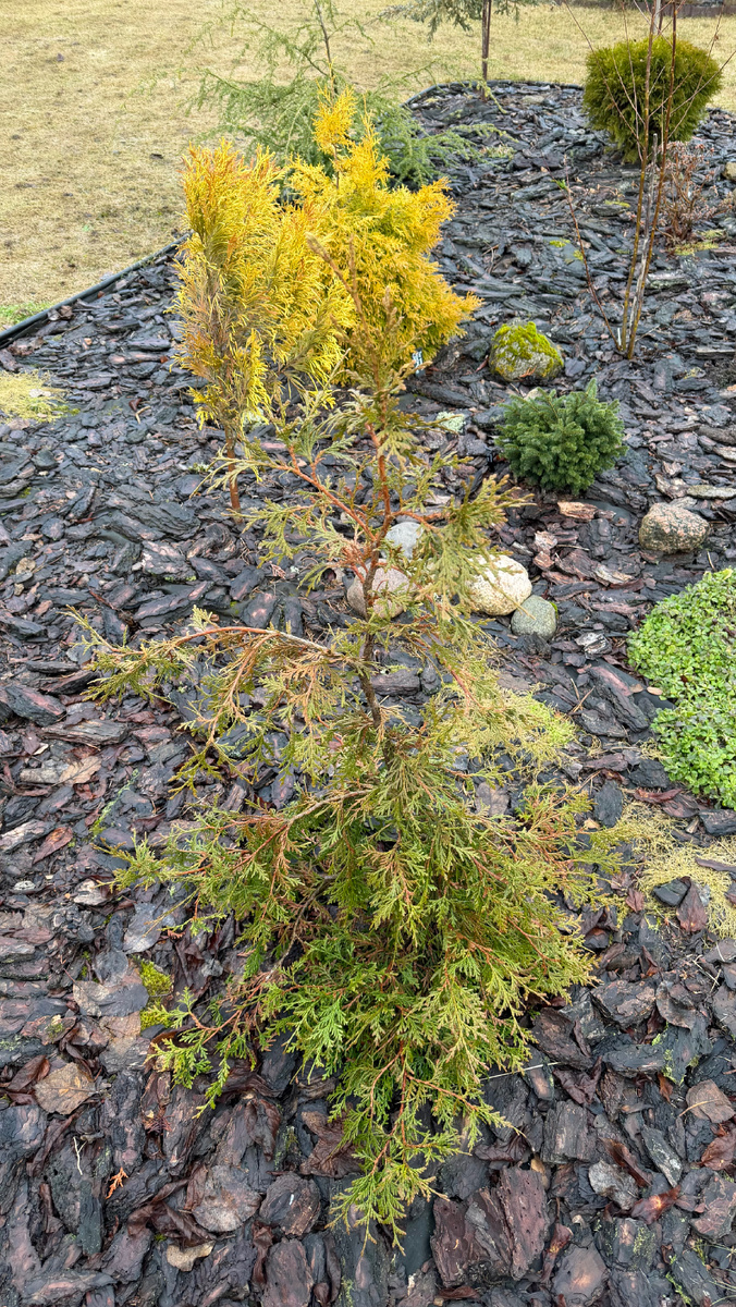 Так вот, в предыдущие годы она жутко выглядела после зимы, засушивала много молодых, однолетних веточек. А в этом году смотрю — бодрячком, нигде ничего не подсохло, выглядит хорошо. 👌