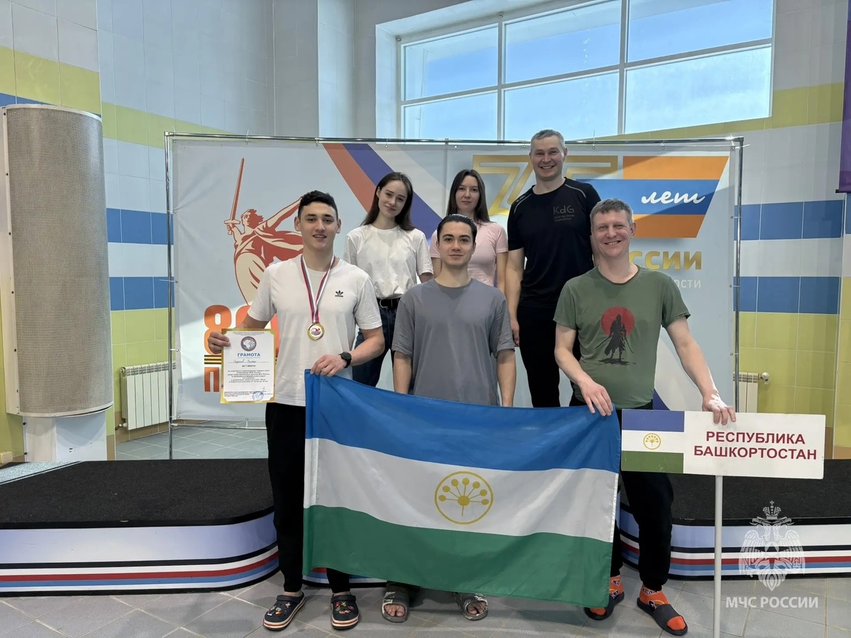 Мастер-пожарный специализированной пожарно-спасательной части главного управления МЧС России по РБ Тимир Садыков занял первое место в преодолении дистанции на 100 м в вольном стиле на соревнованиях в республике Марий Эл. В регионе собрались лучшие пловцы территориальных органов МЧС России Приволжского федерального округа. Регулярные занятия плаванием развивают физическую силу, выносливость, координацию движений и улучшают общий уровень физической подготовки. Фото: пресс-служба МЧС.