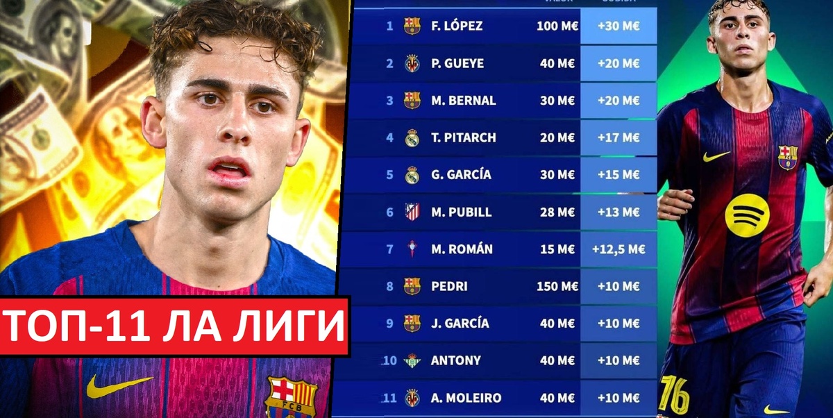 1. Фермин Лопес ("Барселона") - плюс 30 миллионов (нынешняя цена - 100)
