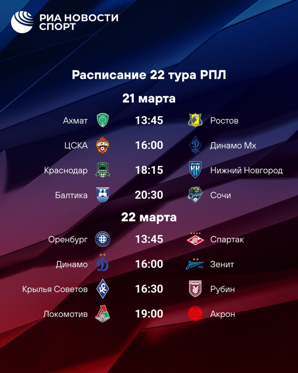 Привет, друзья! Сегодня стартует 22-й тур РПЛ, и это значит, что нас ждёт захватывающая серия матчей, которая будет держать в напряжении до самого конца сезона. В субботу ЦСКА и «Балтика» проведут свои матчи без дисквалифицированных главных тренеров Фабио Челестини и Андрея Талалаева. Это добавляет интриги и интереса к предстоящим играм. В воскресенье нас ждёт особенно интересный матч в Москве, где набравшее ход «Динамо» примет «Зенит». Эти команды уже давно ведут борьбу за высокие места, и каждый матч между ними — это настоящее испытание для болельщиков. Кто победит в воскресенье? Развязка РПЛ уже близко! Этот тур обещает быть насыщенным и эмоциональным. Болельщики смогут увидеть, как команды будут бороться за очки и пытаться изменить свою судьбу в чемпионате. Поддерживайте свои любимые команды, переживайте за их успехи и неудачи — это и есть настоящая спортивная страсть!