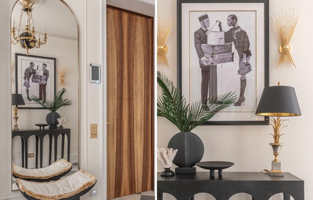Показываем прихожую из проекта дизайнера Оксаны Пастернак Дизайнер Оксана Пастернак создала интерьер двушки для 19-летней девушки-студентки, которая любит путешествовать и проводить каникулы в Европе. Вдохновением послужила атмосфера парижских домов — высокие белые стены, деревянные окна, лепнина. Планировку организовали так: гостиную объединили с кухней, создали прихожую с гостевым санузлом, совмещенным с постирочной, а еще обустроили основную спальню с большим санузлом. Прихожая здесь заслуживает отдельного внимания. Прихожая встречает шахматным полом из крупноформатной плитки — темно-серый мрамор чередуется со светло-бежевым. Графичная раскладка добавляет динамики белому пространству и поддерживает парижскую эстетику — такие полы встречаются в старых европейских домах и дворцах. Плитка выложена по диагонали, что визуально расширяет узкую прихожую. Главный элемент прихожей — черная витрина со стеклянными дверцами и латунными петлями, которая служит для хранения обуви и сумок. Внутри