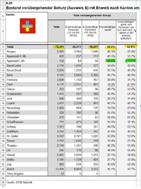 📌 " Статистика количества лиц со статусом S и их занятости на 28 февраля 2026 года с разбивкой по кантонам